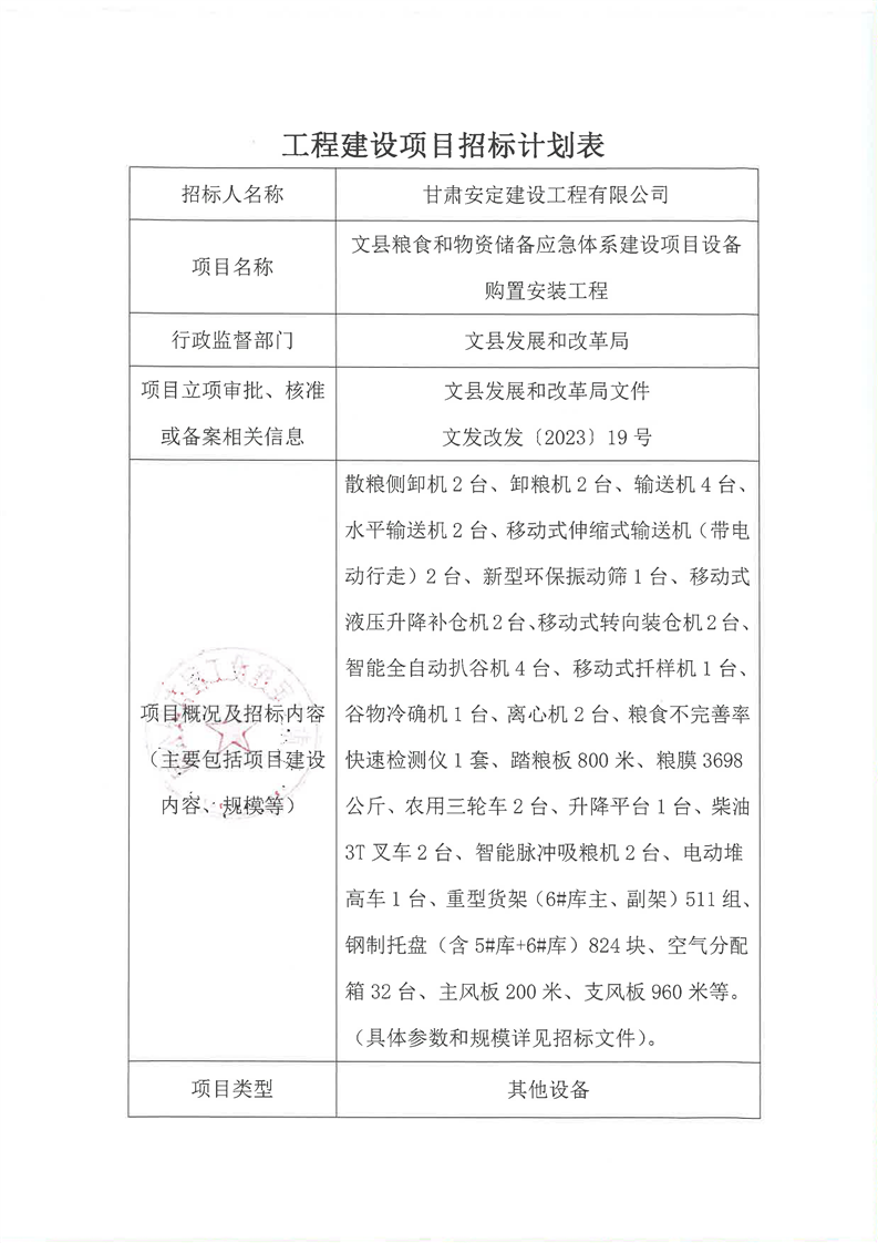 文县粮食和物资储备应急体系建设项目设备购置安装工程