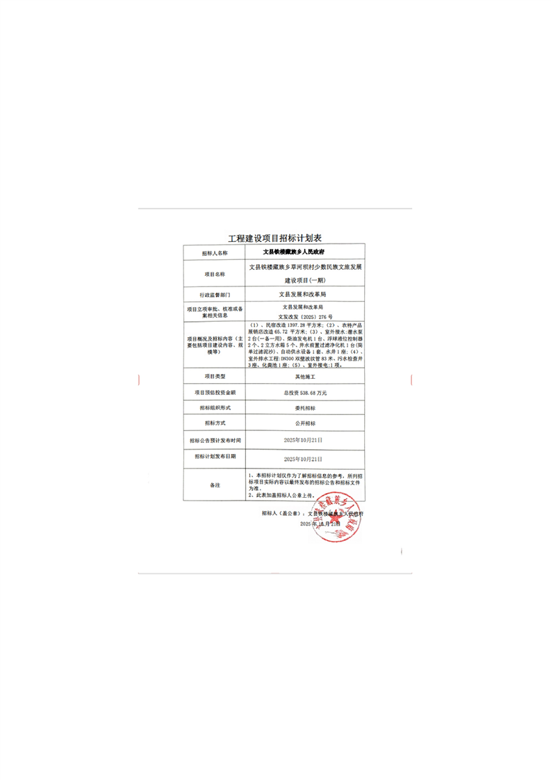 文县铁楼藏族乡草河坝村少数民族文旅发展建设项目(一期)