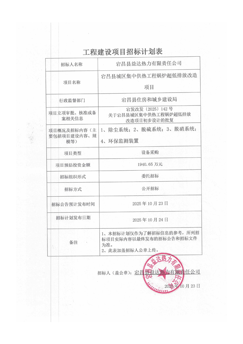 宕昌县城区集中供热工程锅炉超低排放改造项目