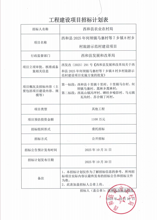 西和县2025年何坝镇马寨村等7乡镇8村乡村旅游示范村建设项目