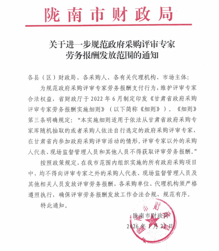 关于进一步规范政府采购评审专家劳务报酬发放范围的通知